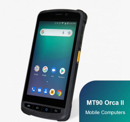 MT90 Orca Il, razvit za hitro in učinkovito skeniranje črtne kode, zagotavlja največjo produktivnost. Njegov mehanizem za skeniranje megapikslov je vgrajen na vrhu naprave in ga je mogoče sprožiti z navideznim gumbom na zaslonu ali fizičnim gumbom ob strani dvojke za enostavno iskanje po točkah.